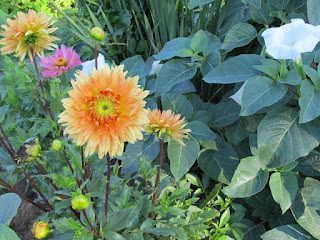 As I've said many time, dahlias connect anyone who's a Shook to Grandma Ruth. Every summer, I plant a few bulbs in her honor and watch as the buds prepare to open up into regal blossoms. Grandma always interspersed gladiolas into her dahlia rows. The beds where she grew her dahlias out the driveway are still clearly discernible....One of these days, I'll sneak down in the early summer and dig in a few of my bulbs in her honor.